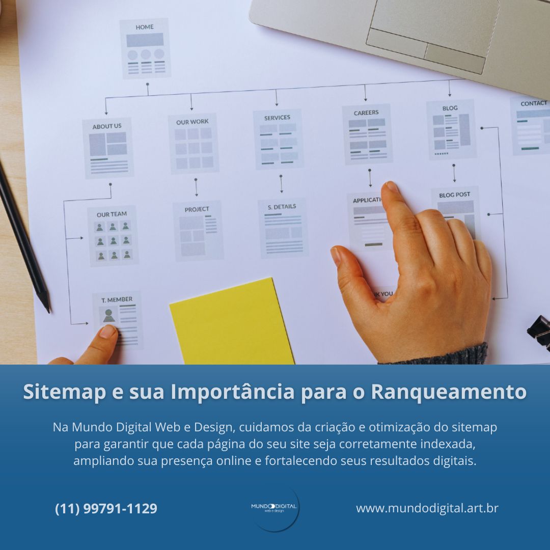 Na Mundo Digital Web e Design, cuidamos da criação e otimização do sitemap para garantir que cada página do seu site seja corretamente indexada, ampliando sua presença online e fortalecendo seus resultados digitais.